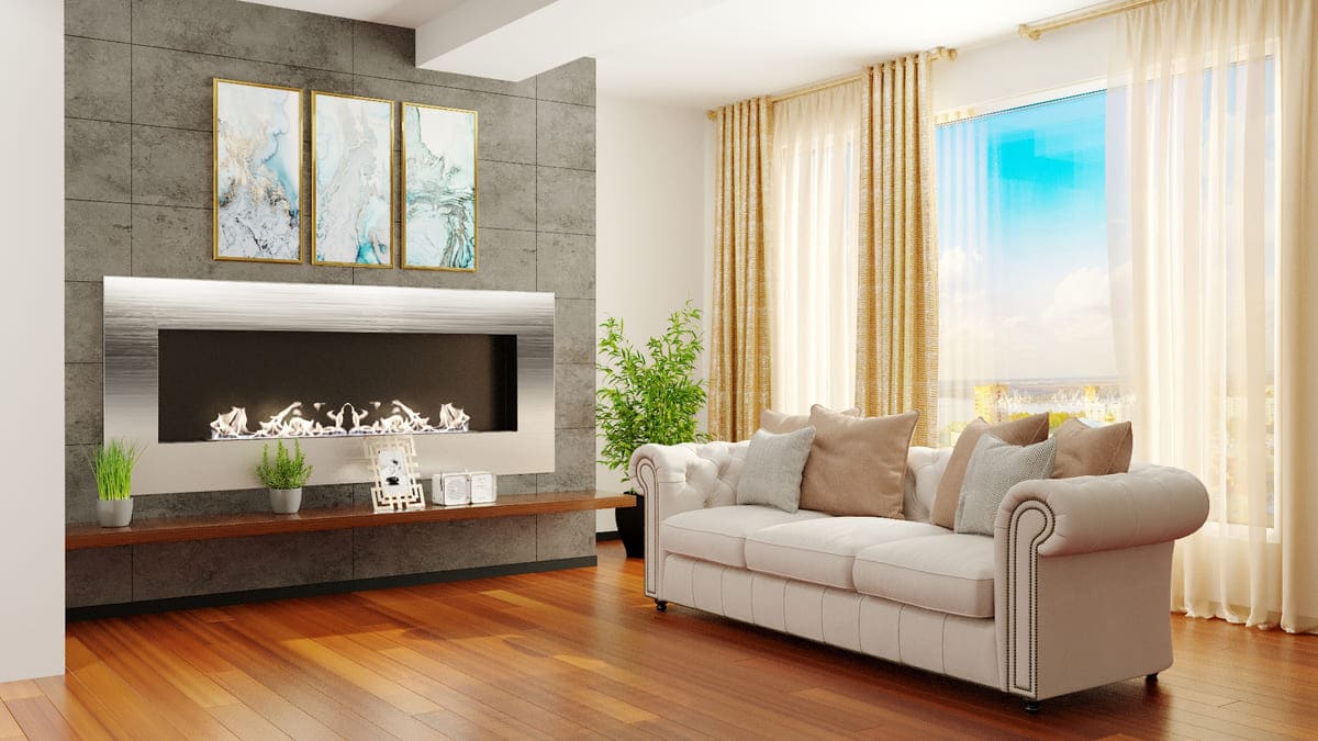 Декоративное стекло — крепится на всю заднюю стенку очага. За счет своего зеркального отражения, пламя визуально становится в 2 раза больше и кажется, что камин горит еще ярче.