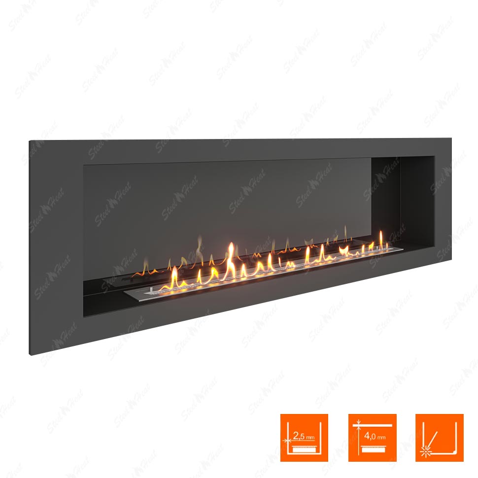 Встраиваемый Биокамин SteelHeat LONG 1800 предназначен для встраивания в глухие ниши из гипсокартона, кирпича, пеноблоков, бетона.