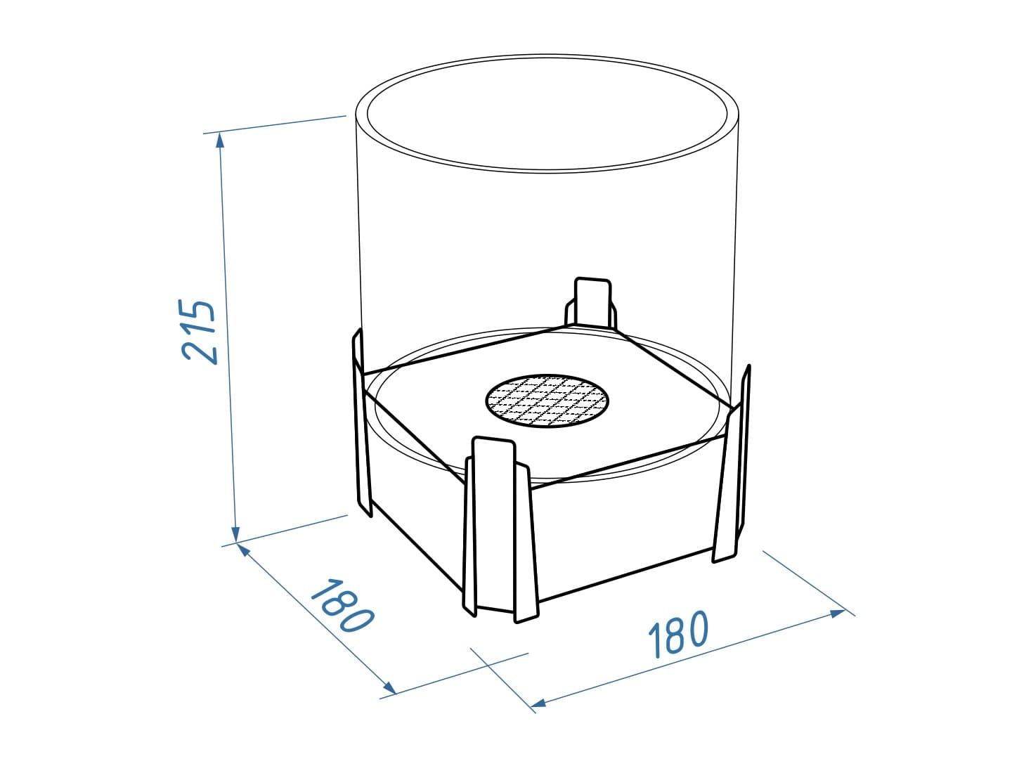 Представляет собой металлический внешний корпус с встроенным топливным блоком Lux Fire 150-2 на декоративных ножках в виде Стрельца. Огонь ограничивается стеклянным закаленным плафоном диаметром 180 мм.Среднее время горения 3 часа
